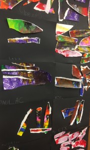 Example 1 – Students were required to paint after a reading exercise. After it had dried the teacher asked them to rip up their work. This provocation aligns with life “when all our hard work can be ended in an instant”. After some reluctance, students followed the direction of the teacher who, through ongoing questionsing, prompted the students by asking them how they could achieve a good outcome from a bad situation, just like life! Here are some of the results…