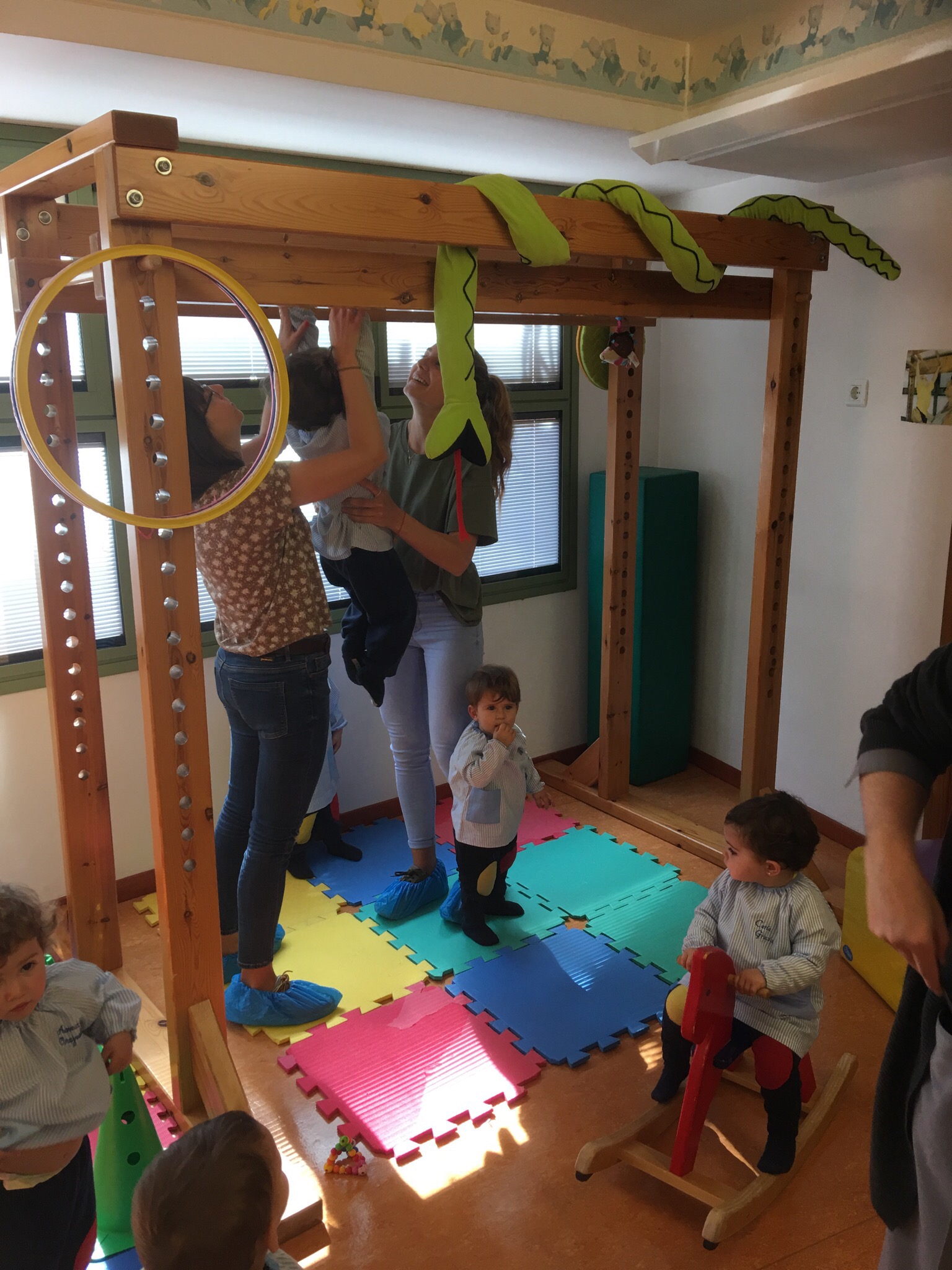 Another fascinating observation.. With reference to well accepted research about the best actitivies for people recovering from brain injuries and applying that to all people, Col.legi Mare de Déu dels Àngels has adapted this research to mainstream learning. They have developed what I call the ‘graduated monkey bar program’. As 2 year olds olds, students are required to hold onto the monkey bar for 5 then 10 then 15 then 20 seconds up to 3 year olds, all the time holding the bars with the same grip as a holding a pencil. As 4 year olds students are required, with the help of a teacher to swing from one side to another until they grow to become 5 year olds who do not required the help of an adult. They use their sight to grip each bar with ‘pencil grip’, they swing from side to side to develop the balance of the body as well as the resilience through physical strength and mental toughness to ‘hold on’ to the bars for the entire time – and there was not a ‘soft floor’ in sight!